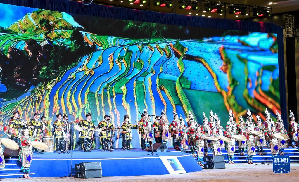 7月9日,演員在2023年生態(tài)文明貴陽(yáng)國際論壇閉幕式上演唱侗族大歌。