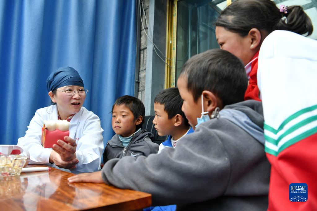 近日,上海市徐匯區牙病防治所的醫務(wù)工作者來(lái)到西藏浪卡子縣普瑪江塘鄉,為當地居民普及口腔保健知識并進(jìn)行義診服務(wù)。普瑪江塘鄉海拔5373米,是我國海拔最高的鄉。