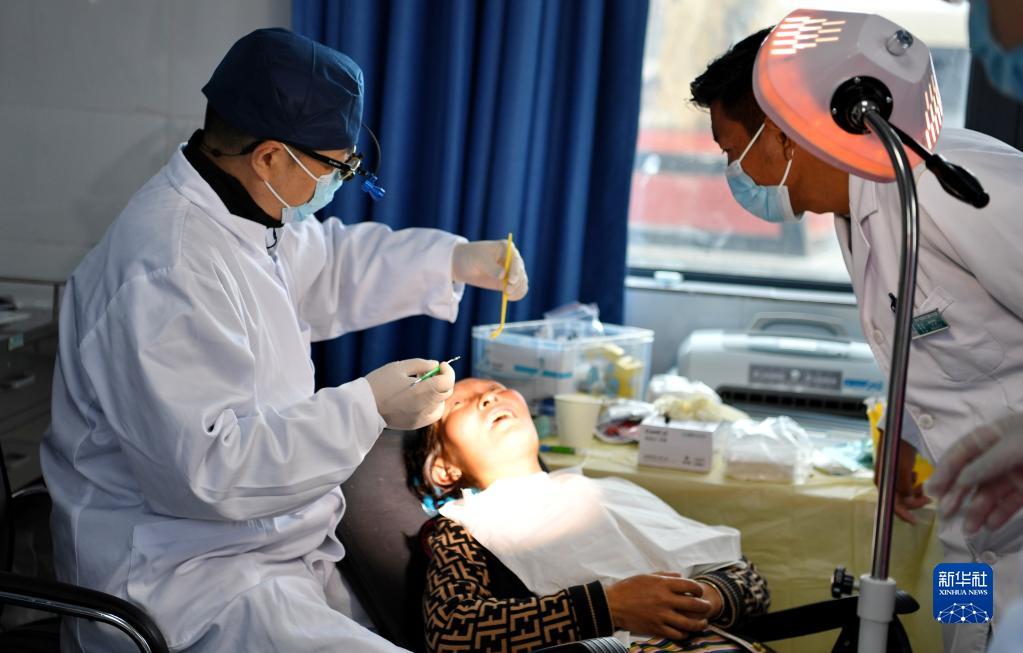 近日,上海市徐匯區牙病防治所的醫務(wù)工作者來(lái)到西藏浪卡子縣普瑪江塘鄉,為當地居民普及口腔保健知識并進(jìn)行義診服務(wù)。普瑪江塘鄉海拔5373米,是我國海拔最高的鄉。