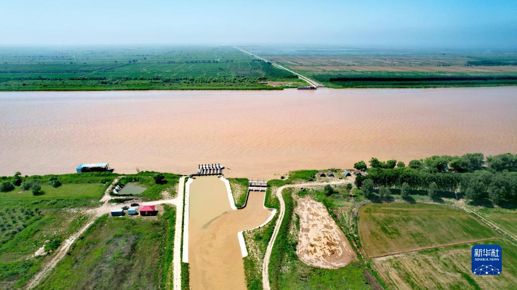 黃河三角洲國家級自然保護區黃河口4號引水閘(下)及引水渠(無(wú)人機照片,2023年6月30日攝)。