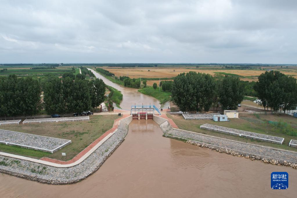 正在進(jìn)行生態(tài)補水的崔家節制閘(無(wú)人機照片,2023年6月30日攝)。