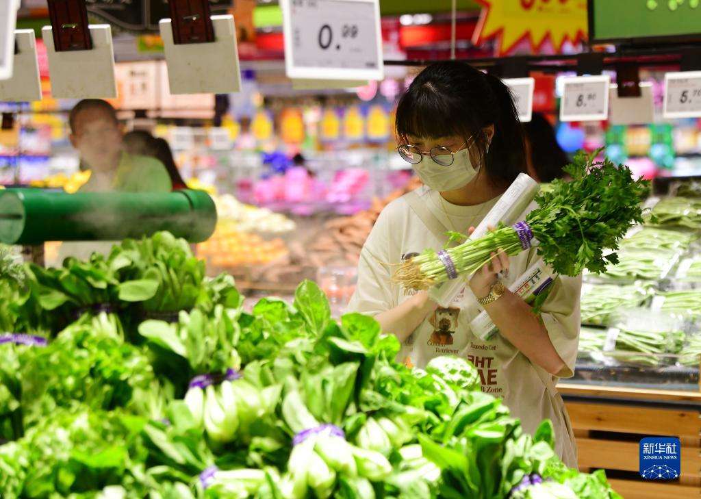 7月10日,顧客在江蘇省無(wú)錫市一家超市選購蔬菜。