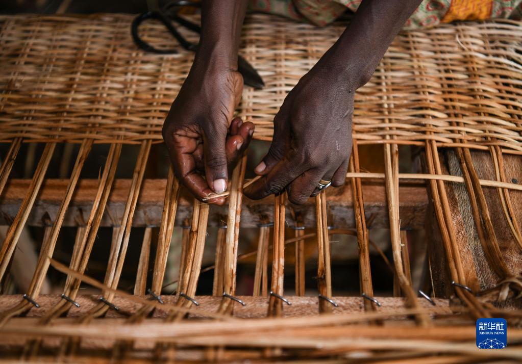 6月21日,在位于布隆迪經(jīng)濟首都布瓊布拉的卡蒙蓋手工業(yè)培訓中心,學(xué)員在生產(chǎn)車(chē)間制作藤編產(chǎn)品。