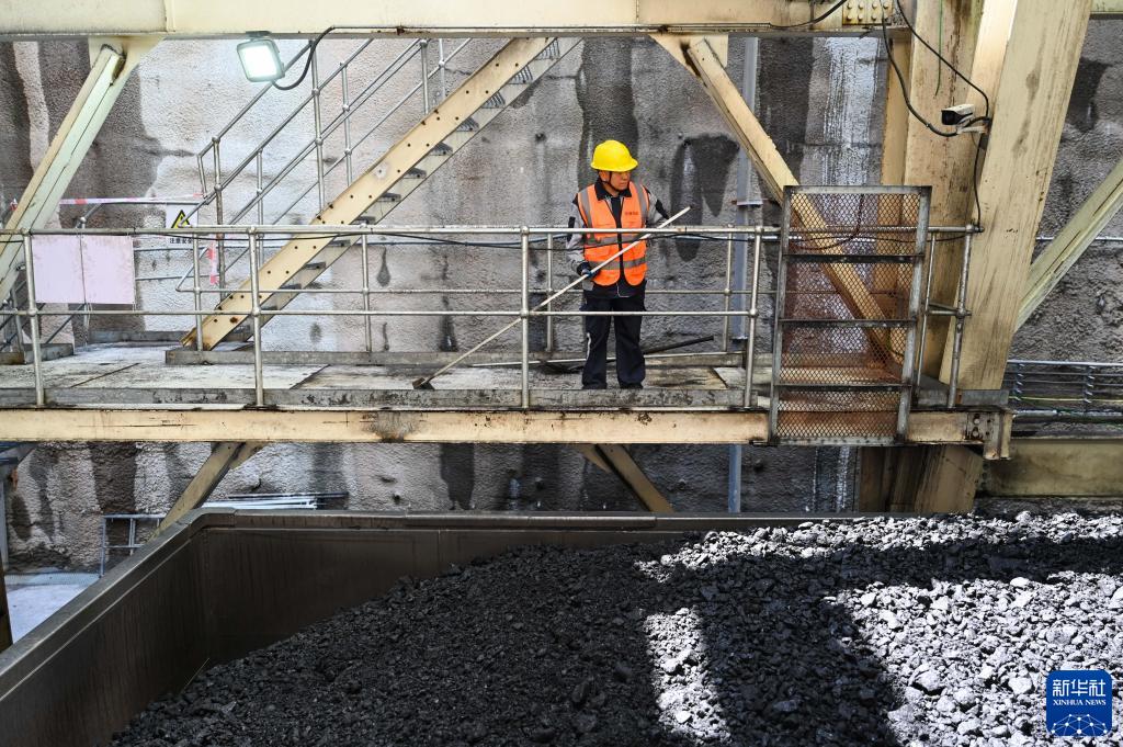 7月8日,在大唐龍王溝煤礦,工作人員在列車(chē)裝煤現場(chǎng)工作。