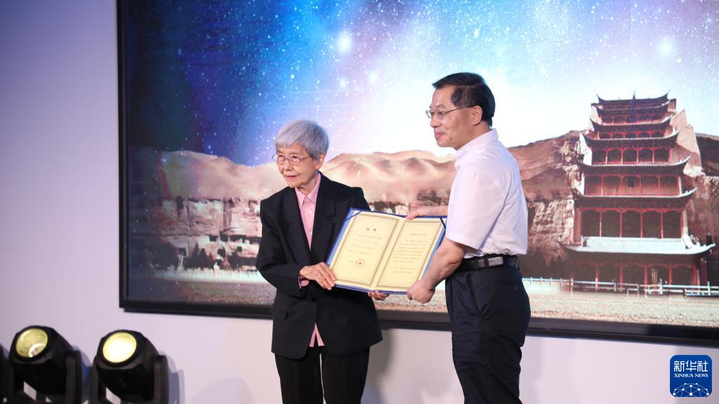 7月10日,樊錦詩(shī)(左)領(lǐng)取“樊錦詩(shī)星”命名證書(shū)。