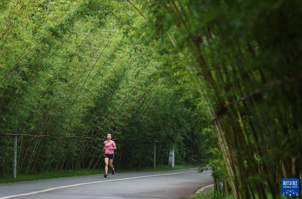 一位市民在四川省宜賓市江安縣長(cháng)江竹島上跑步(6月30日攝)。