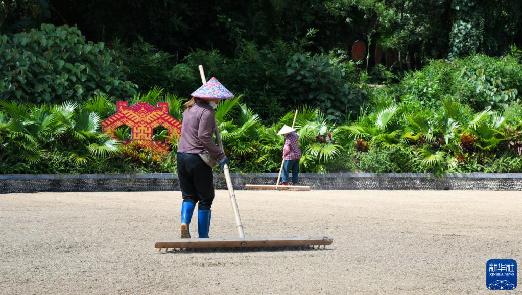 三伏將至,海南省五指山市水滿(mǎn)鄉毛納村村民搶抓農時(shí)晾曬稻谷,田間地頭一派繁忙。