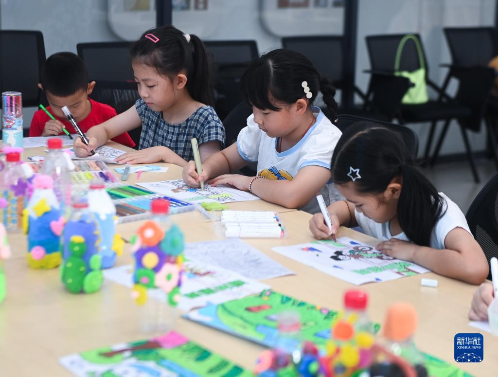 7月11日,小朋友們在浙江省湖州市吳興區龍泉街道祥和社區參加低碳主題繪畫(huà)活動(dòng)。