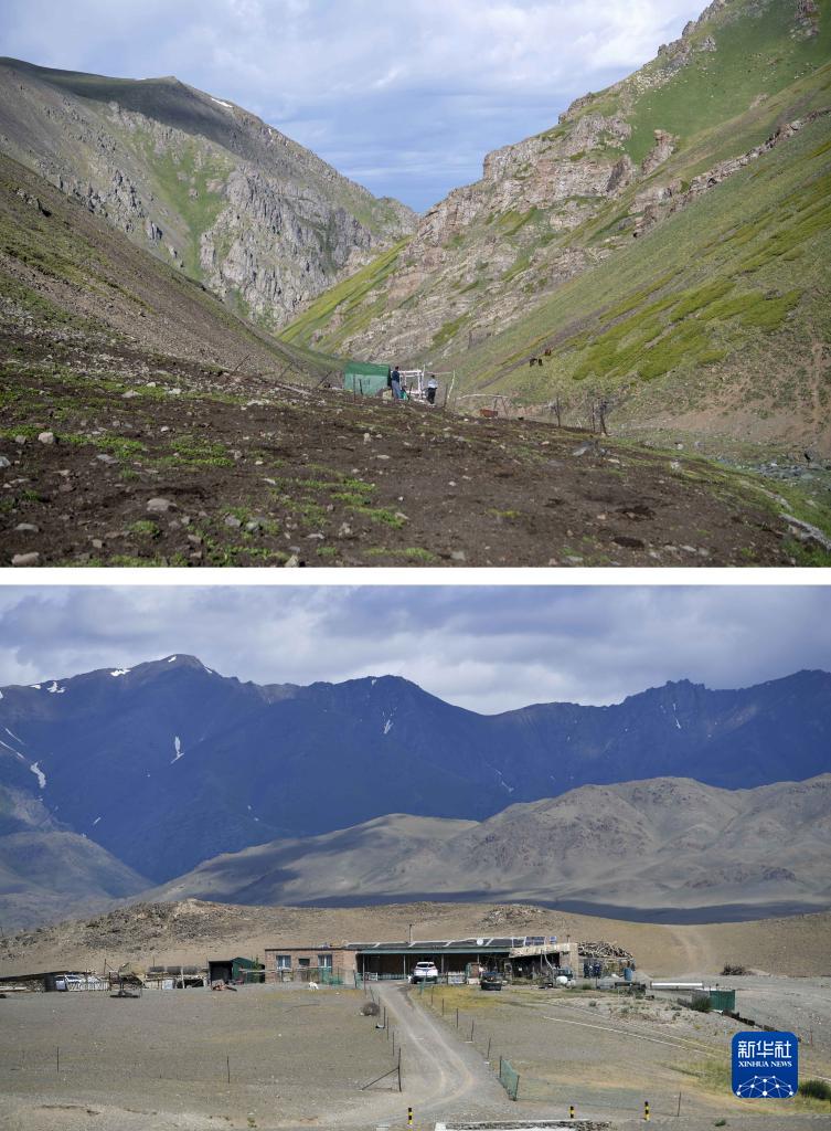 拼版照片:上圖為牧民哈布得拉什么在高山夏季牧場(chǎng)居住的帳篷搭建于巴爾魯克山深處(7月5日攝);下圖為哈布得拉什么一家在巴爾魯克山腳下常年居住的房子(7月6日攝)。