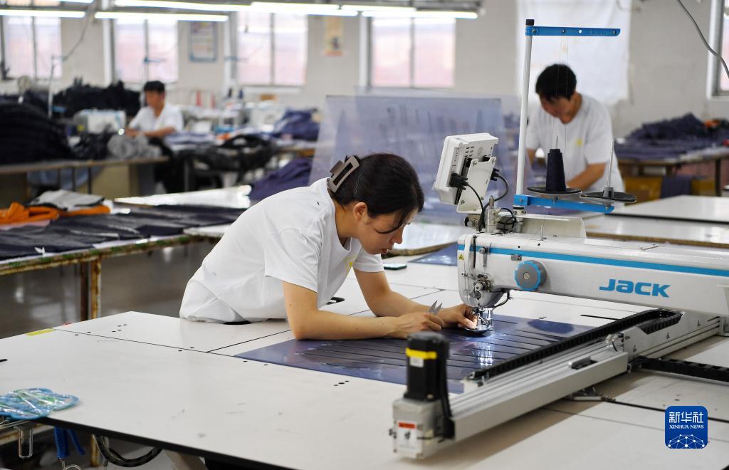 7月11日,河北省遷安市上射雁莊鎮七里坎村一家服裝加工企業(yè)的工人在車(chē)間內工作。