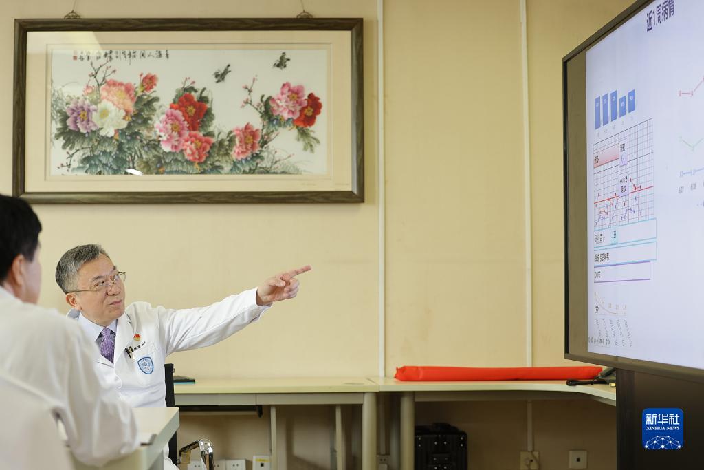 7月3日,黃曉軍在北京大學(xué)人民醫院血液科進(jìn)行教學(xué)查房。