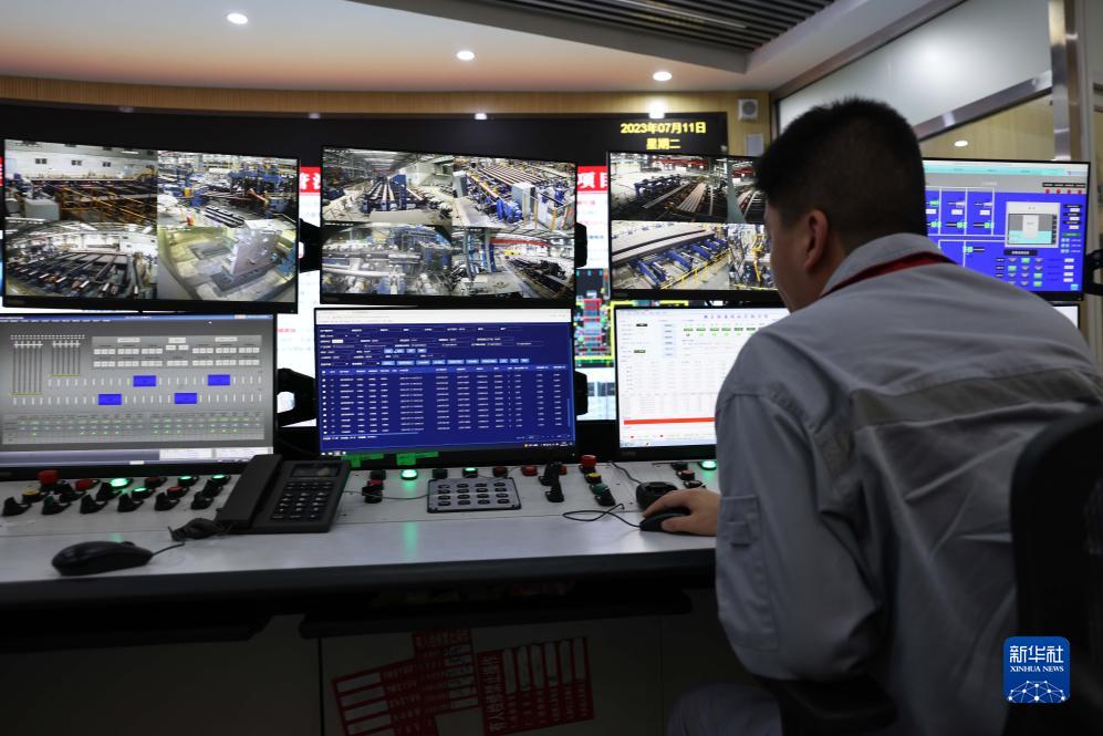 7月11日,在承德市鷹手營(yíng)子礦區一家無(wú)縫鋼管生產(chǎn)企業(yè),工作人員在集控中心工作。