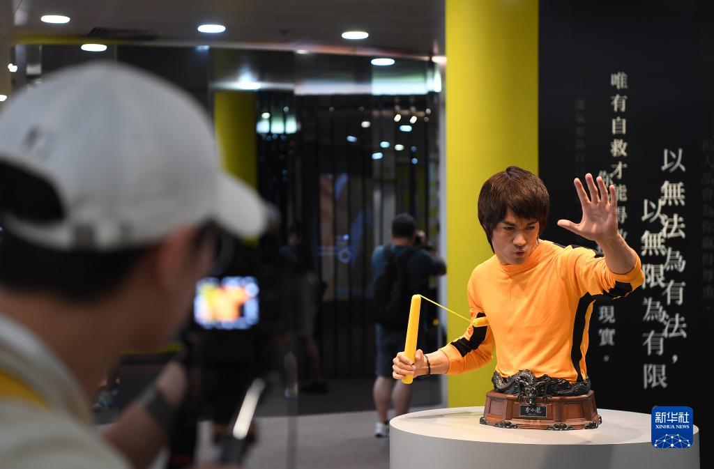 7月11日,媒體記者在香港文化博物館“李小龍——經(jīng)典永續”展覽上拍攝。