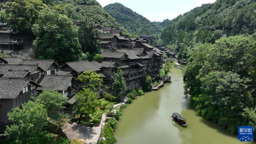 7月11日拍攝的貴州省遵義市播州區烏江寨景區一角(無(wú)人機照片)。