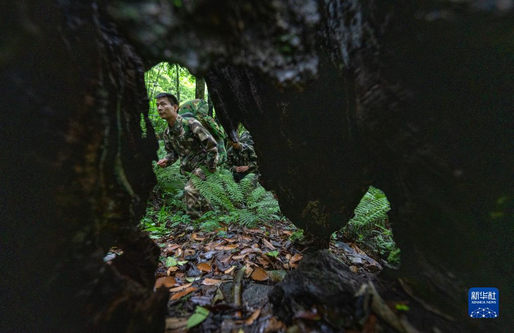 7月8日,巡護隊員在高黎貢山國家級自然保護區中行進(jìn)。新華社記者 費茂華 攝