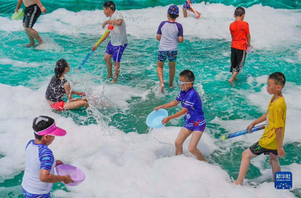 當日是入伏第一天,人們來(lái)到海邊、泳池和水上樂(lè )園戲水消暑,暢享清涼。