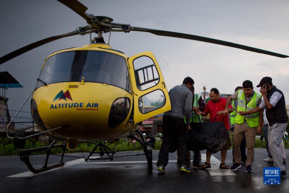 7月11日,載有墜機事件遇難者遺體的直升機抵達尼泊爾加德滿(mǎn)都。