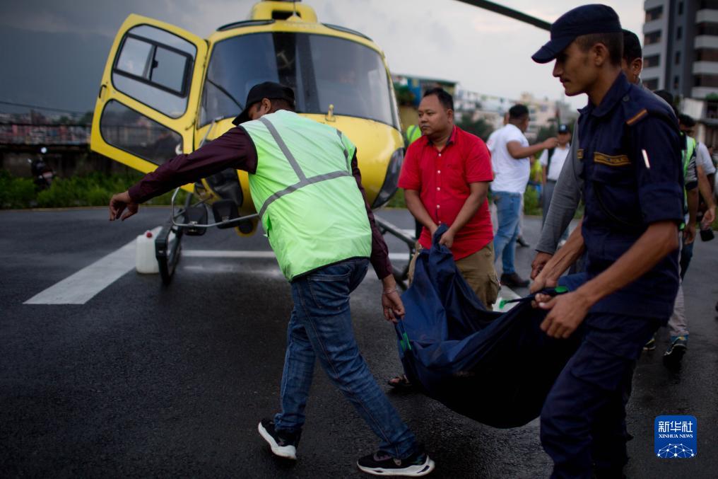 7月11日,載有墜機事件遇難者遺體的直升機抵達尼泊爾加德滿(mǎn)都。