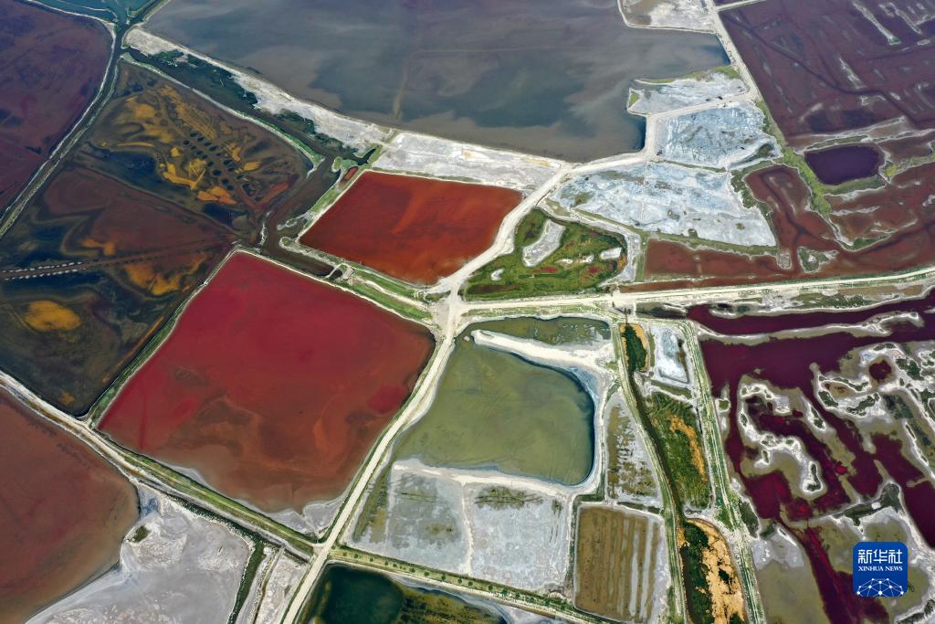 這是無(wú)人機拍攝的運城鹽湖(7月11日攝)。