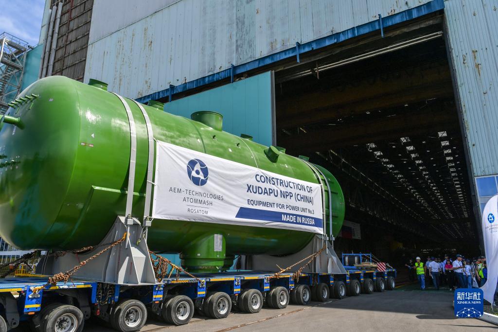 7月11日,在俄羅斯南部羅斯托夫州伏爾加頓斯克市,徐大堡核電站3號機組關(guān)鍵設備起運。