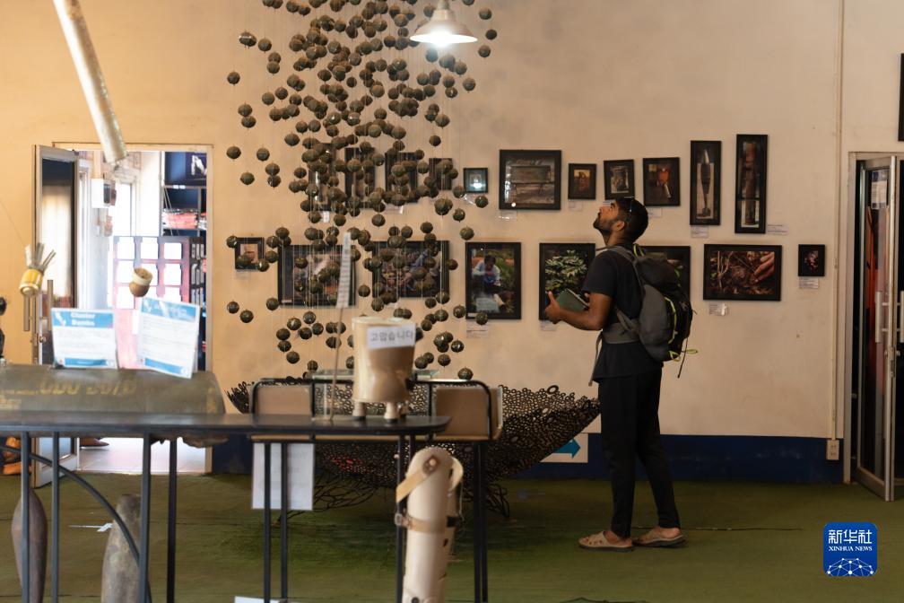 7月11日,一名男子在老撾首都萬(wàn)象“義肢與矯形合作事業(yè)”展館里觀(guān)看模擬美軍散布集束彈藥的展品。