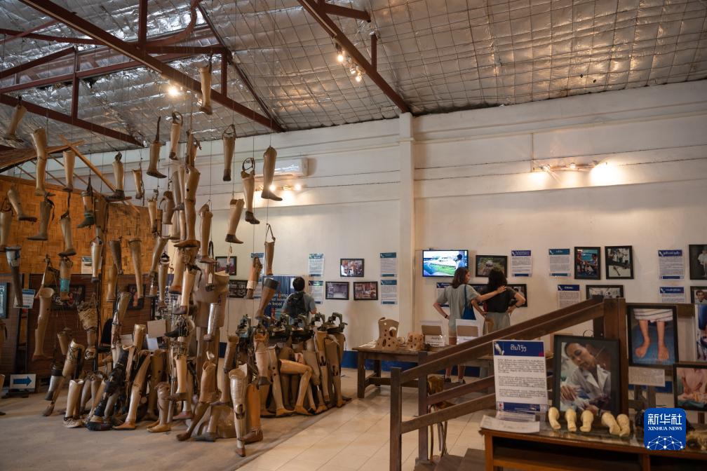 這是7月11日在老撾首都萬(wàn)象“義肢與矯形合作事業(yè)”展館拍攝的老撾未爆彈受害者康復服務(wù)展。