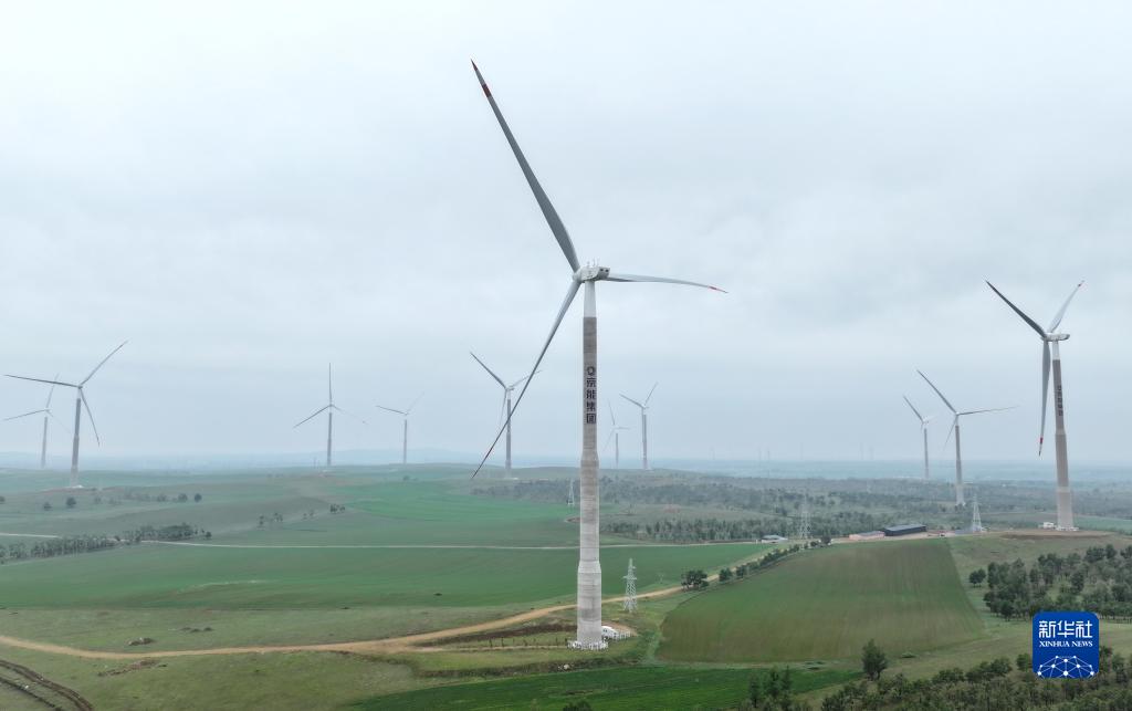 這是7月12日在張家口市康??h拍攝的風(fēng)電場(chǎng)(無(wú)人機照片)。