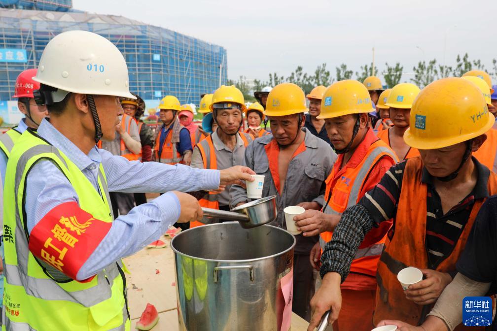 近日,合肥市相關(guān)建筑施工單位啟動(dòng)高溫施工預案,開(kāi)展“工地送清涼”活動(dòng),幫助高溫下戶(hù)外勞動(dòng)者防暑降溫。