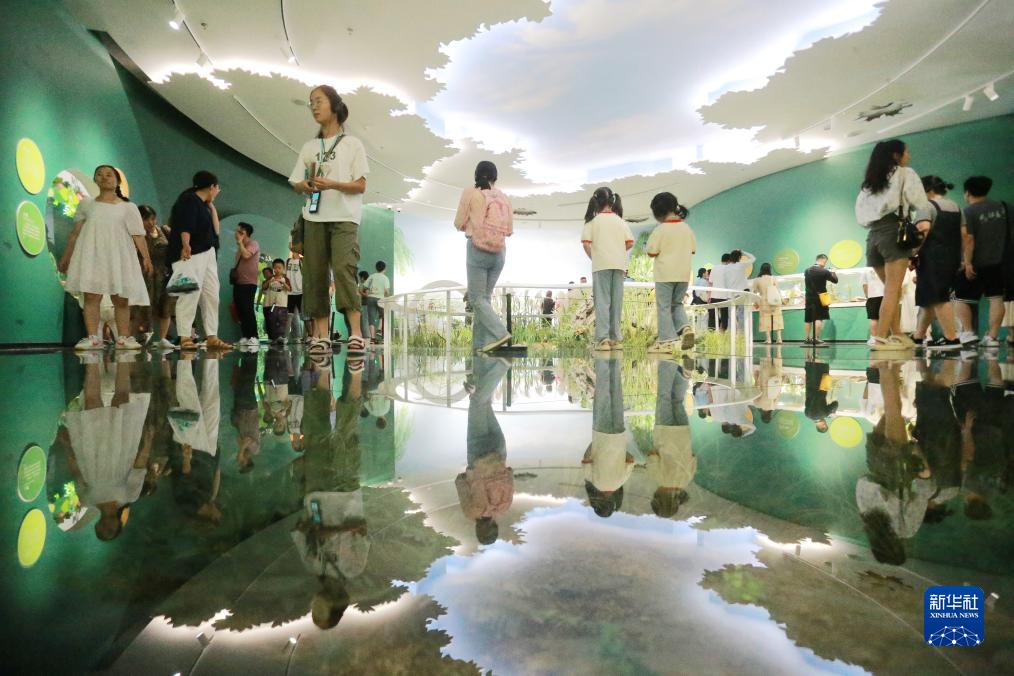 7月12日,一些家長(cháng)帶著(zhù)孩子在江蘇揚州中國大運河博物館參觀(guān)。