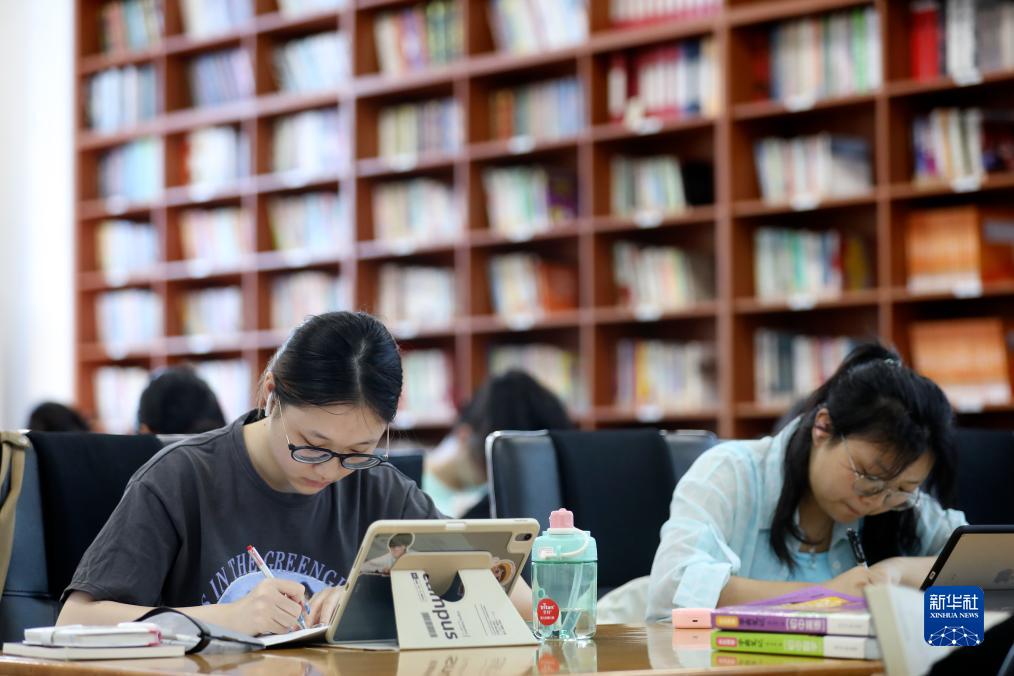 7月12日,幾名學(xué)生在湖南省資興市圖書(shū)館學(xué)習。