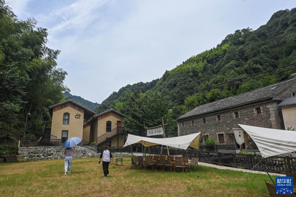 7月13日拍攝的湍口鎮湍源里民宿集群。這個(gè)由閑置糧倉和村民舊居改造而成的民宿由當地新鄉賢出資打造并經(jīng)營(yíng),為村集體增加租金收入300萬(wàn)元,帶動(dòng)100余人次就業(yè)。