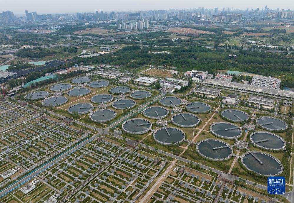 這是成都市第九再生水廠(chǎng),位于錦江區大安橋村,總設計處理規模100萬(wàn)噸/天(6月14日攝,無(wú)人機照片)。新華社記者 江宏景攝