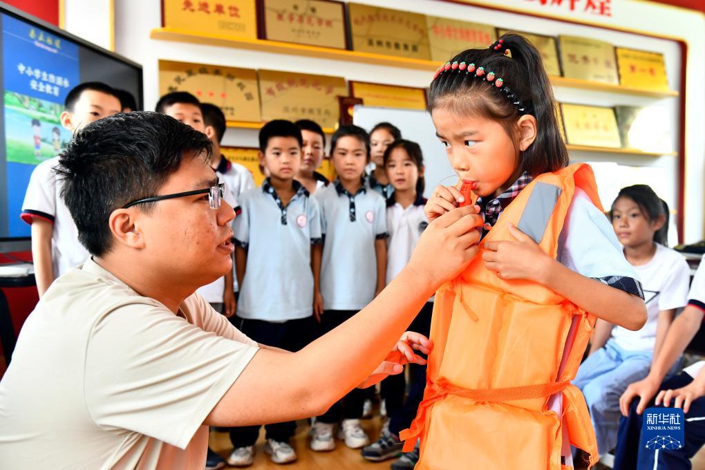 7月13日,在惠民縣石廟鎮一處“濱濱學(xué)堂”,一位公益講師教孩子們防溺水安全知識。
