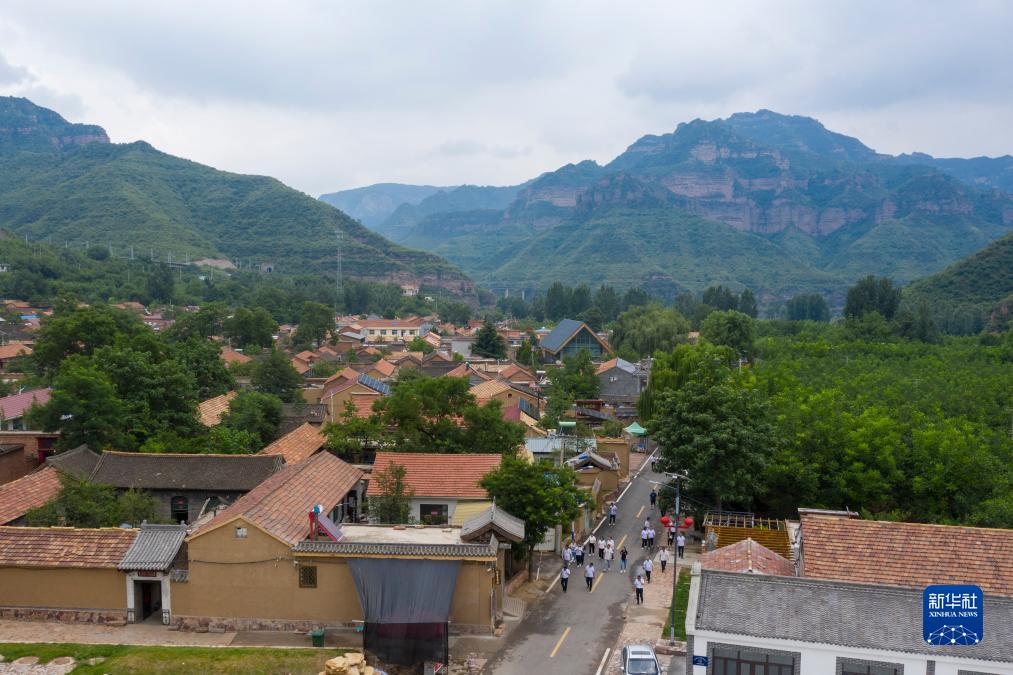 游客在位于左權縣澤城村的中國北方國際寫(xiě)生基地澤城片區參觀(guān)(7月13日攝,無(wú)人機照片)。