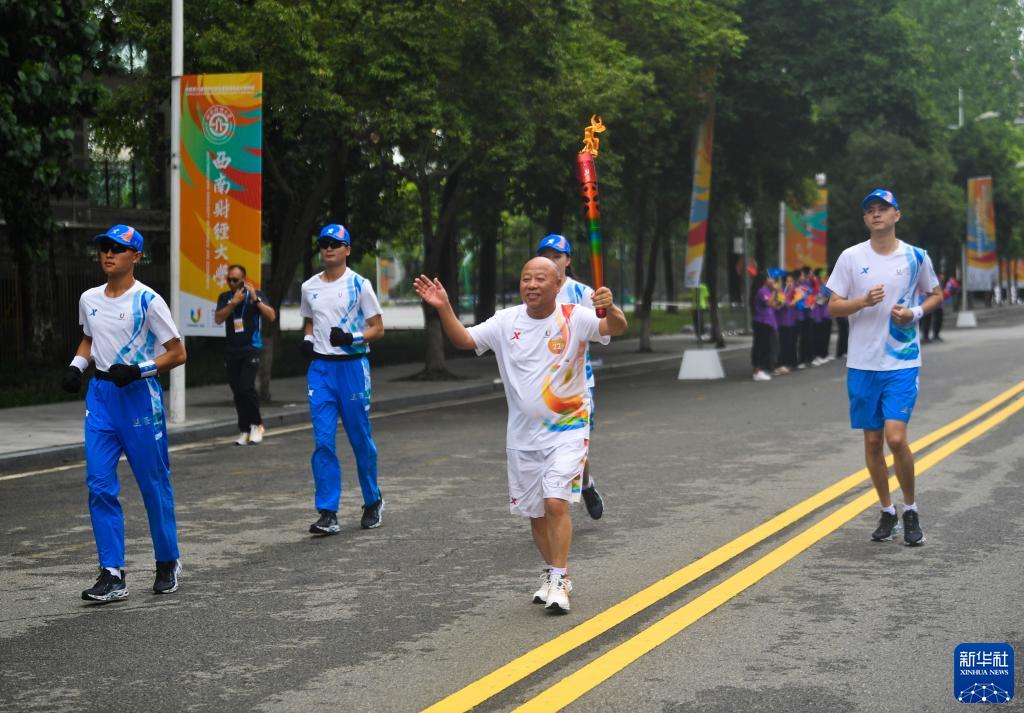 當日,成都第31屆世界大學(xué)生夏季運動(dòng)會(huì )火炬傳遞在西南財經(jīng)大學(xué)(柳林校區)校園內舉行。