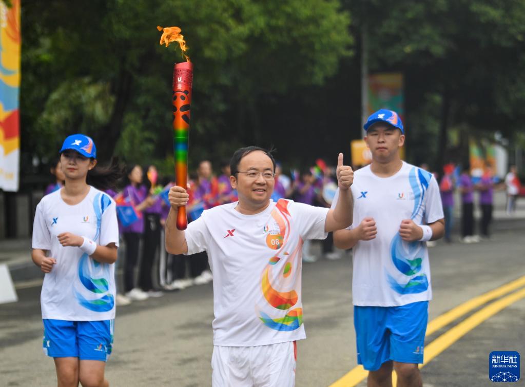 當日,成都第31屆世界大學(xué)生夏季運動(dòng)會(huì )火炬傳遞在西南財經(jīng)大學(xué)(柳林校區)校園內舉行。
