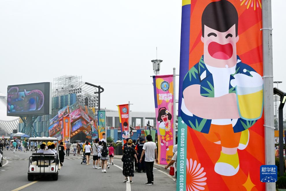 7月14日,游客進(jìn)入金沙灘啤酒城游覽。