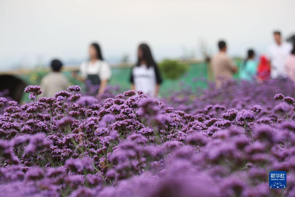 7月14日,游客在貴州省貴陽(yáng)市花溪區石門(mén)花海景區賞花游玩。新華社發(fā)(袁福洪 攝)