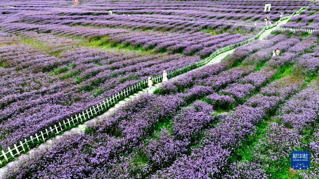 7月14日,游客在貴州省貴陽(yáng)市花溪區石門(mén)花海景區賞花游玩(無(wú)人機照片)。新華社發(fā)(袁福洪 攝)