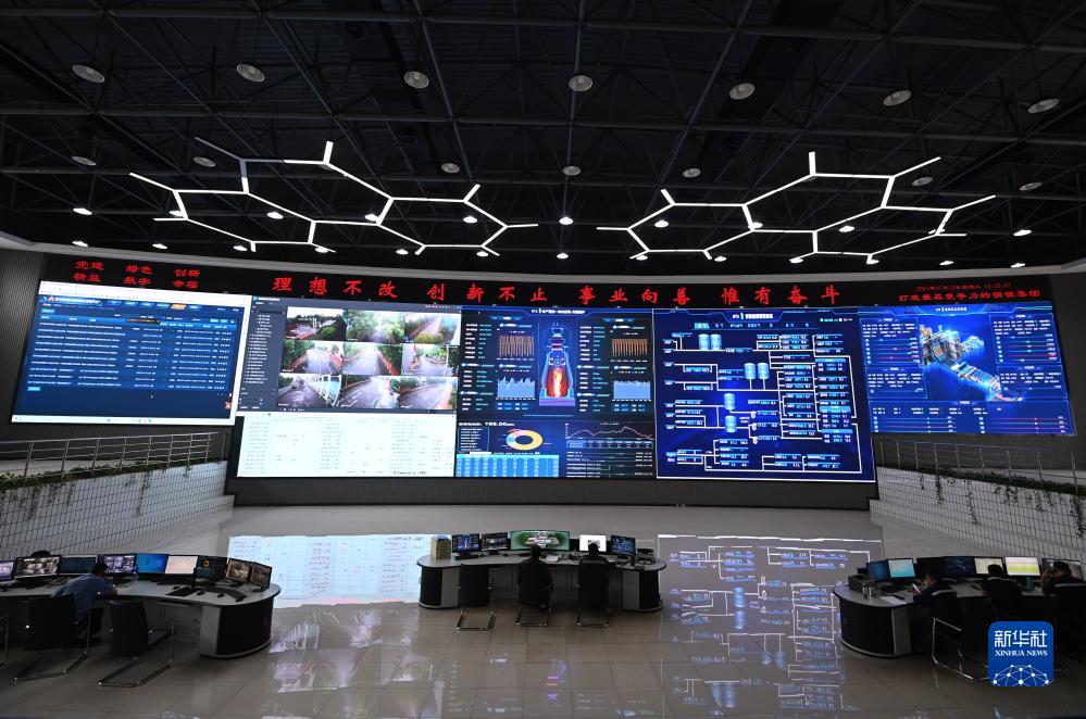 工作人員在天津市新天鋼鋼鐵集團有限公司工業(yè)互聯(lián)網(wǎng)運營(yíng)中心值班(7月12日攝)。