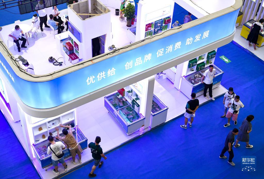 7月14日,參觀(guān)者在博覽會(huì )現場(chǎng)觀(guān)看展出的商品。