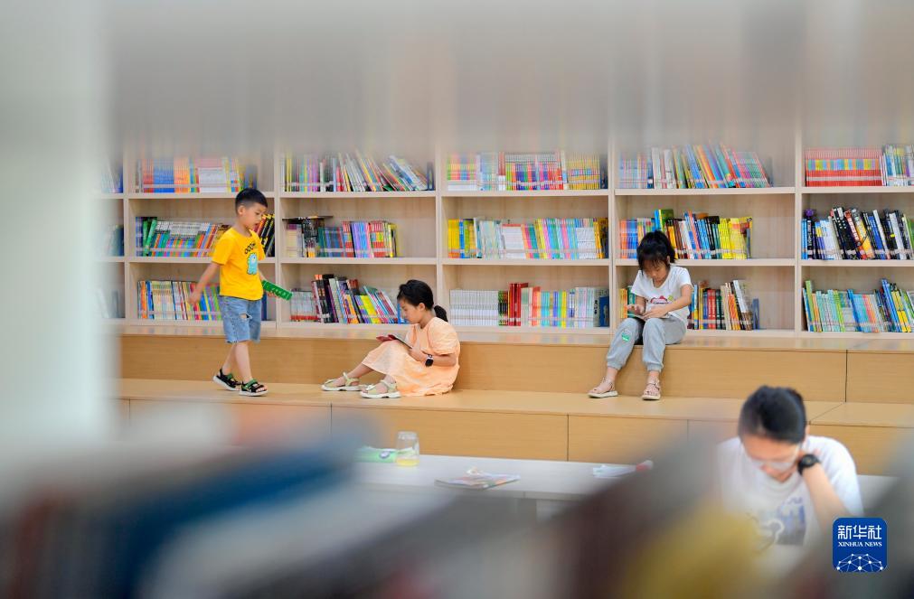 7月14日,小朋友在湖北省恩施土家族苗族自治州宣恩縣圖書(shū)館閱讀書(shū)籍。