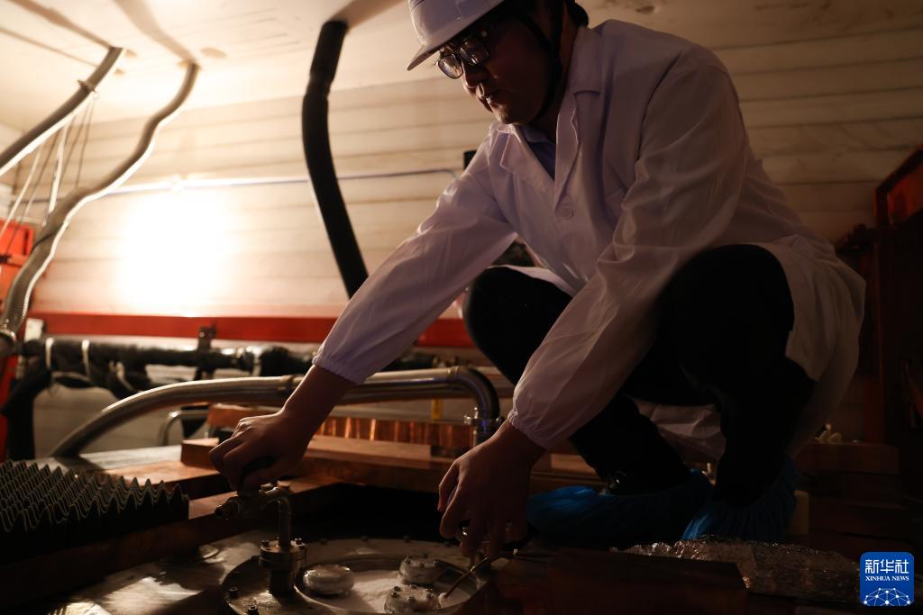 7月3日,在中國錦屏地下實(shí)驗室,楊麗桃博士在檢查實(shí)驗裝置的運行情況。新華社記者 金立旺 攝