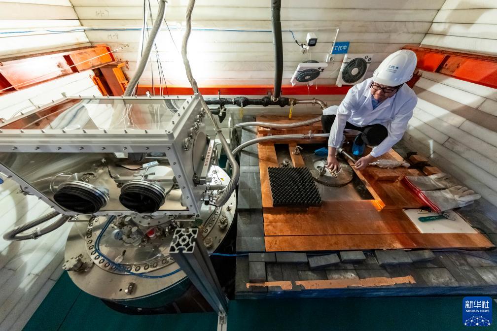 7月3日,在中國錦屏地下實(shí)驗室,楊麗桃博士在檢查實(shí)驗裝置運行情況。新華社記者 沈伯韓 攝