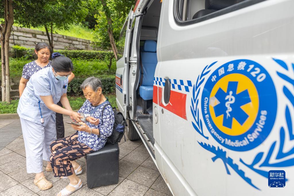 7月14日,在重慶市萬(wàn)州三中江南校區臨時(shí)安置點(diǎn)內,醫護人員為轉移安置人員測量血壓。