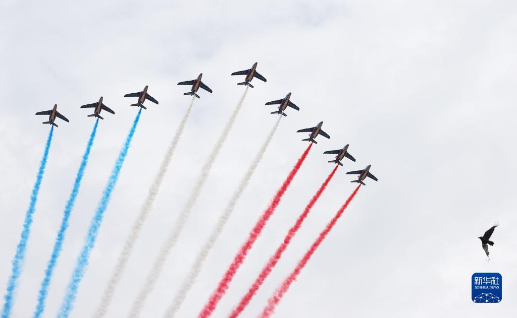 7月14日,“法蘭西巡邏兵飛行表演隊”參加在法國巴黎舉行的國慶閱兵式。新華社記者 高靜 攝