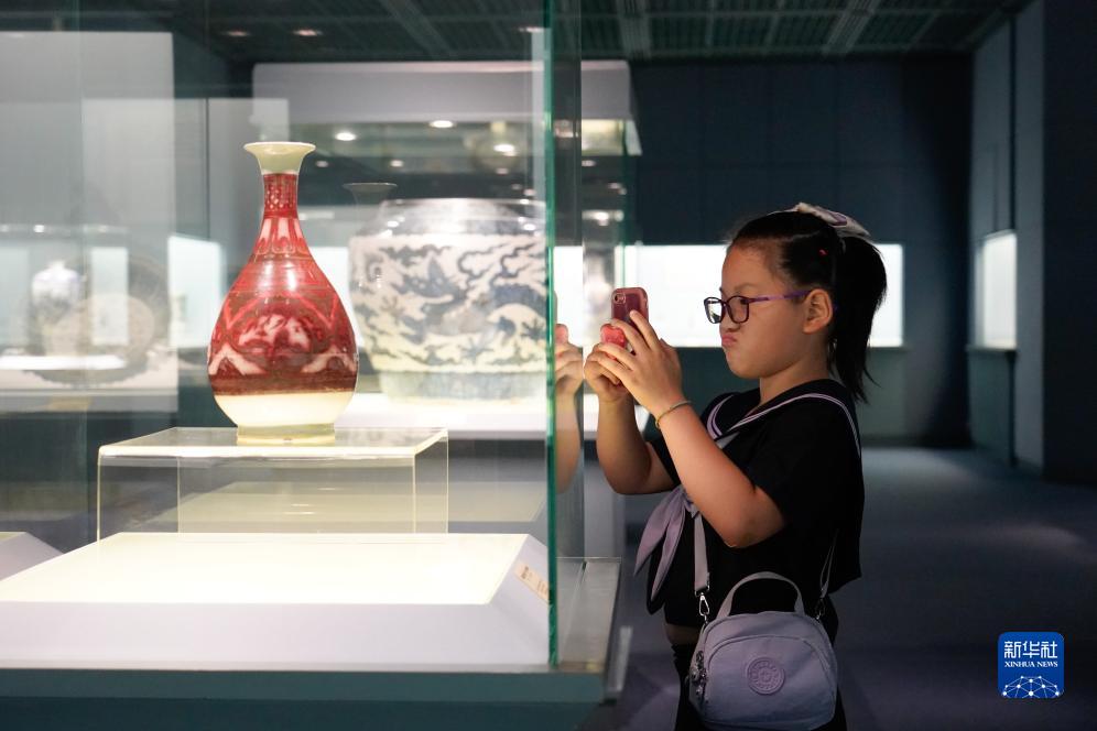 7月14日晚,小朋友在上海博物館的中國古代陶瓷館觀(guān)看展品。