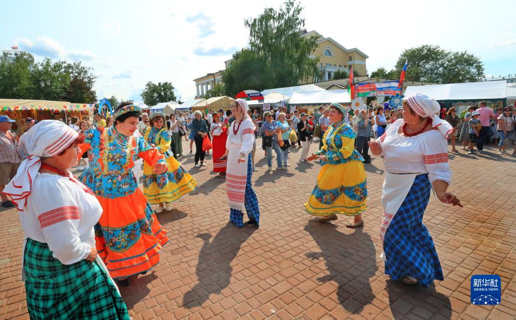 7月14日,演員在白俄羅斯維捷布斯克“斯拉夫巴扎”國際藝術(shù)節上表演民族舞蹈。