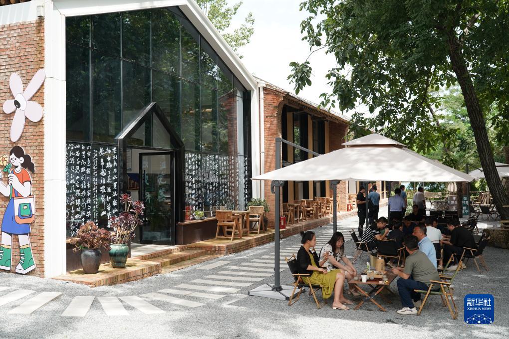 7月14日,游人在周至縣駱峪鎮紅旗村的鄉村會(huì )客廳內休閑。