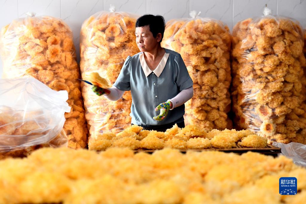 7月15日,在惠民縣胡集鎮銀豐食用菌種植合作社,工作人員篩選烘干后的銀耳。